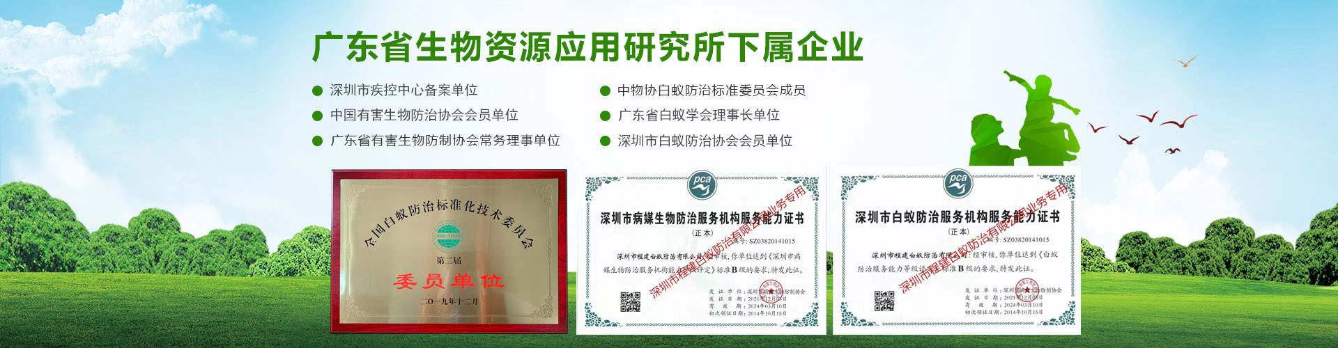 專注于徹底根治、防治結(jié)合,售后跟蹤服務(wù),專業(yè)服務(wù)工程師有豐富實(shí)戰(zhàn)經(jīng)驗(yàn)超過(guò)十年。持有專業(yè)資格證書(shū)認(rèn)證:“有害生物防制服務(wù)機(jī)構(gòu)服務(wù)能力證書(shū)B(niǎo)級(jí)”、“白蟻防治服務(wù)機(jī)構(gòu)服務(wù)能力證書(shū)B(niǎo)級(jí)”所有員工持有“深圳市白蟻防治上崗證”和“深圳市除蟲(chóng)滅鼠上崗證”,雙資格證上崗服務(wù)。榮獲過(guò):“優(yōu)質(zhì)服務(wù)示范單位”、“白蟻防治服務(wù)信譽(yù)AAA級(jí)單位”、“深圳市白蟻防治先進(jìn)單位”、“深圳市十大白蟻防治品牌”、“深圳市殺蟲(chóng)公司”、“深圳市消殺公司”先進(jìn)單位等榮譽(yù)。